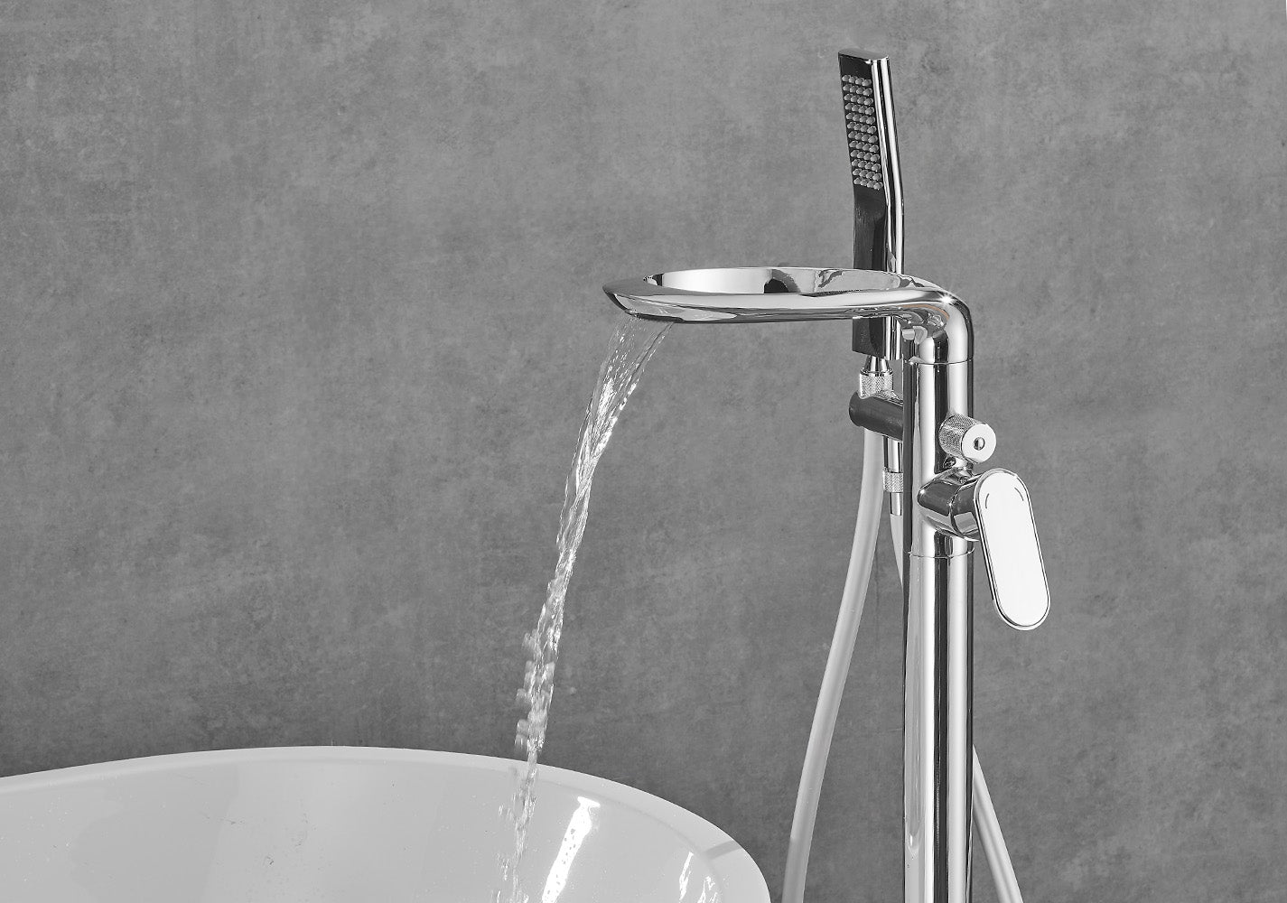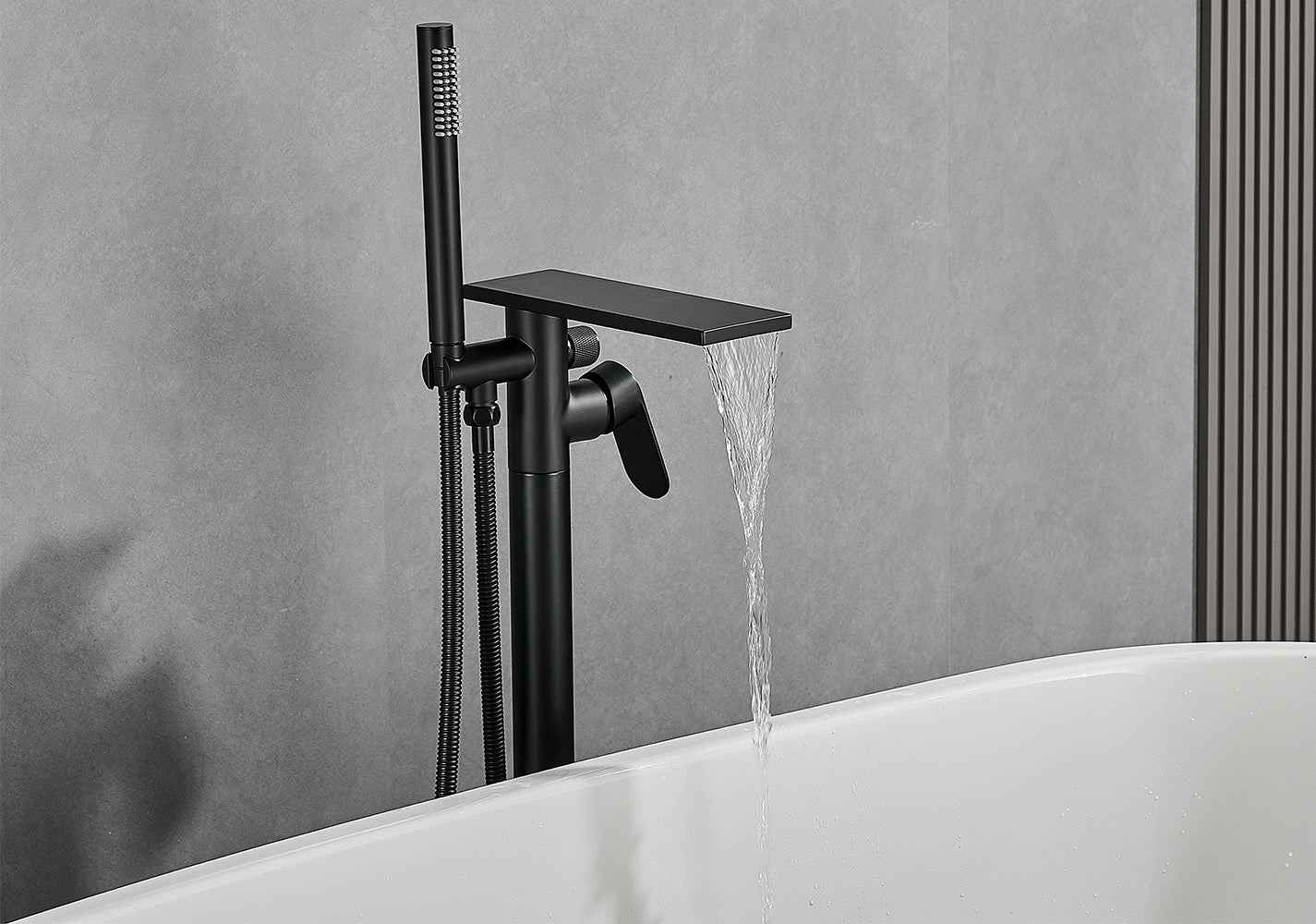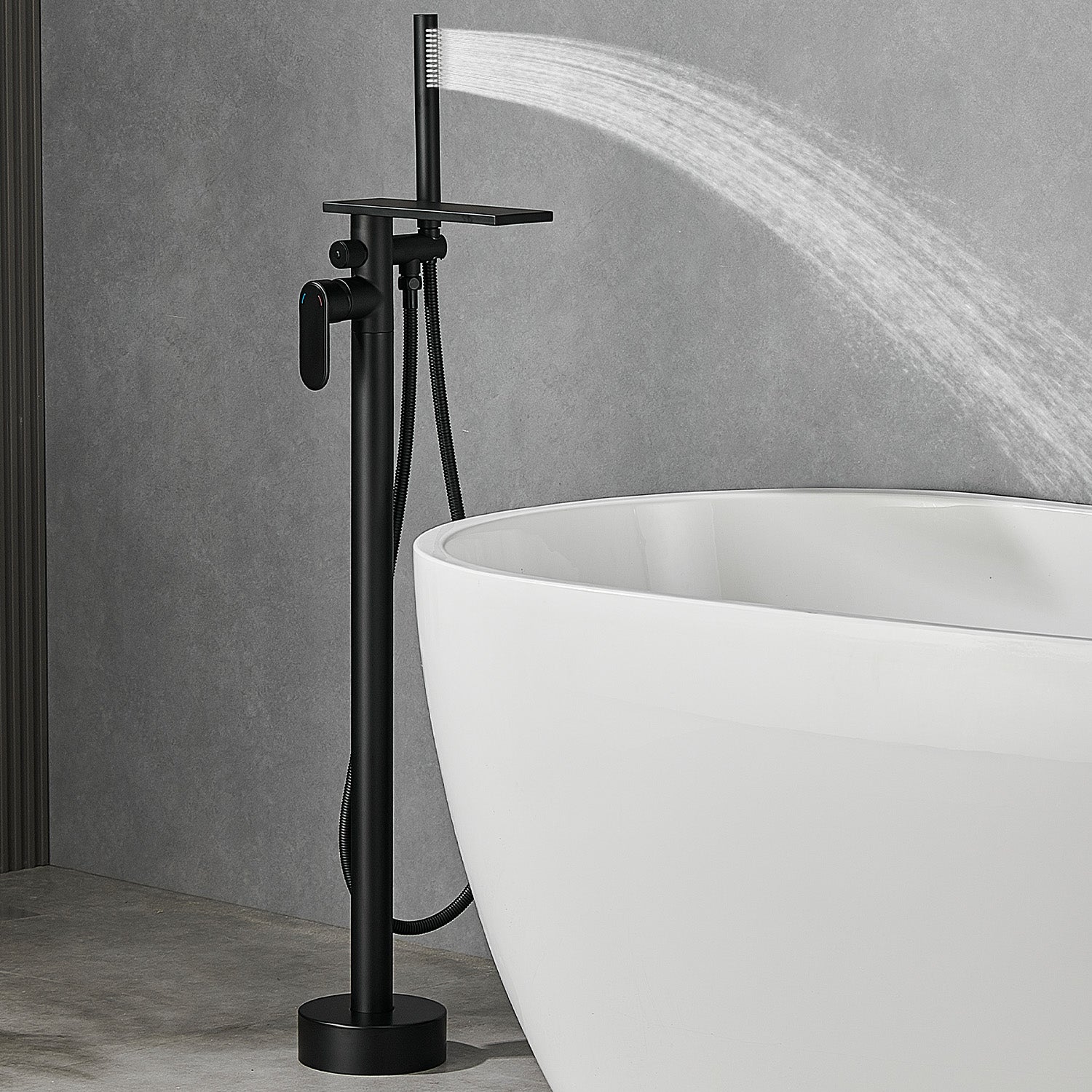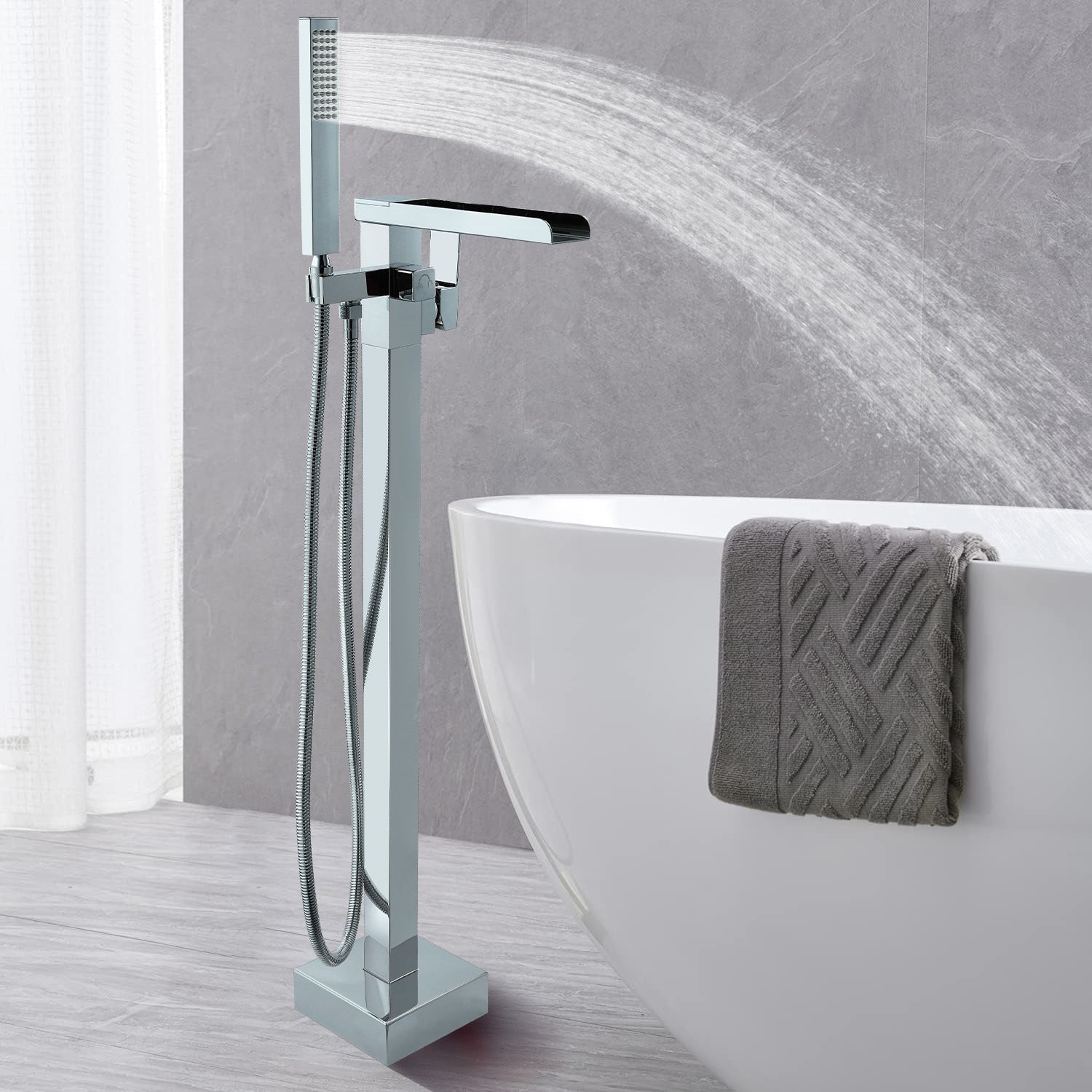 Free Standing Tub Faucet Floor Mount Freestanding Bathtub Filler, Waterfall High Flow, SHBT011