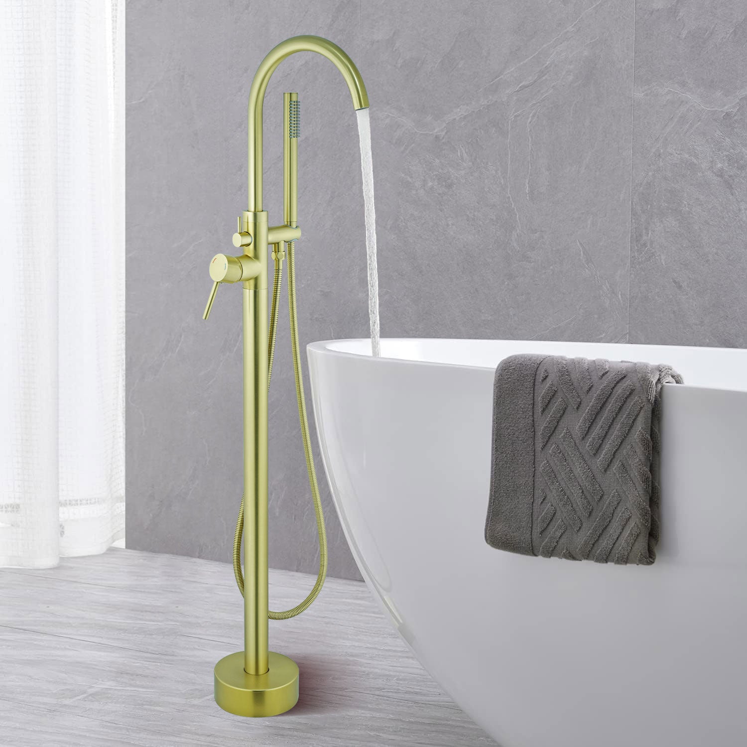 Floor Mount Free Standing Tub Faucet, Brass Stand Alone Tub Filler, Waterfall Flow, SFRT