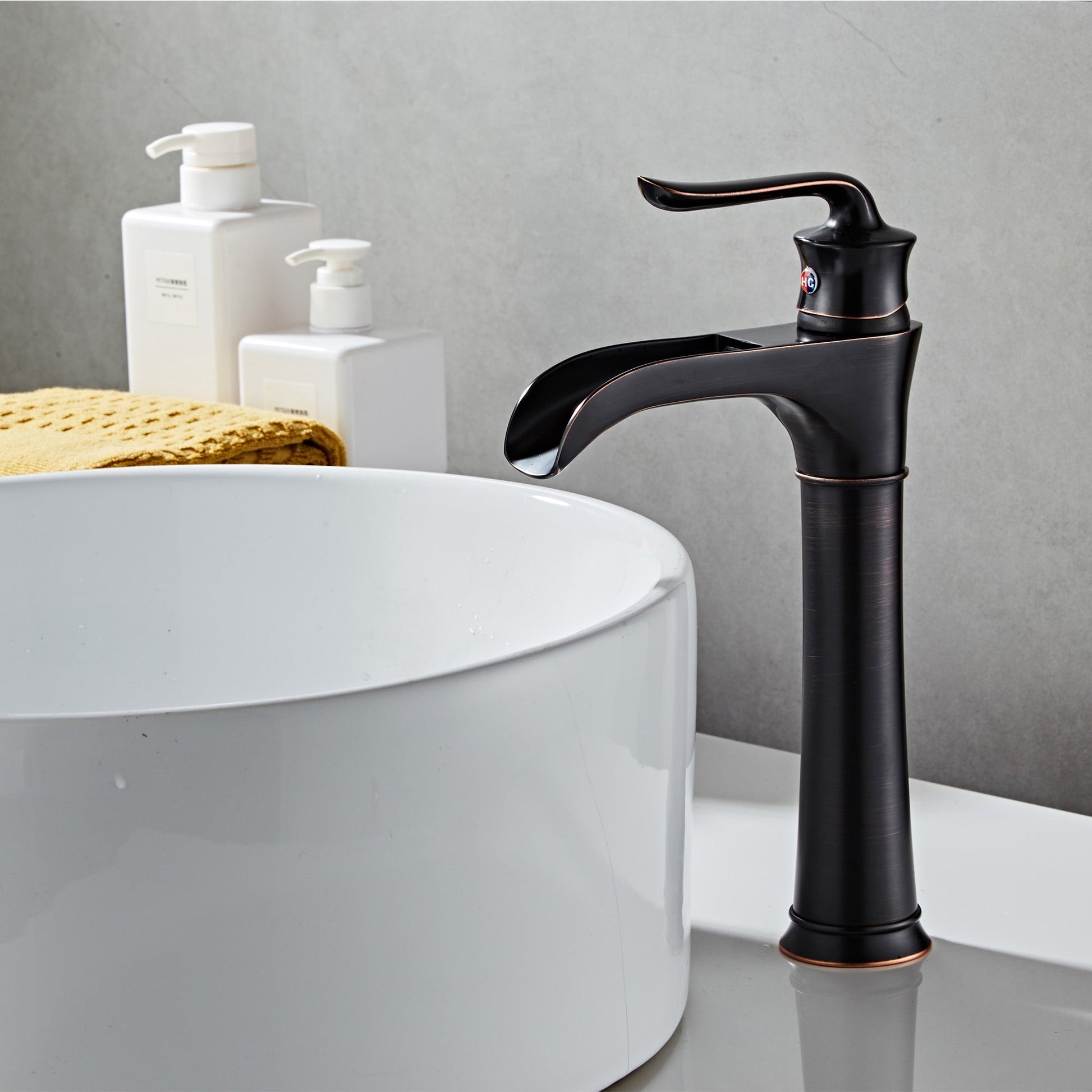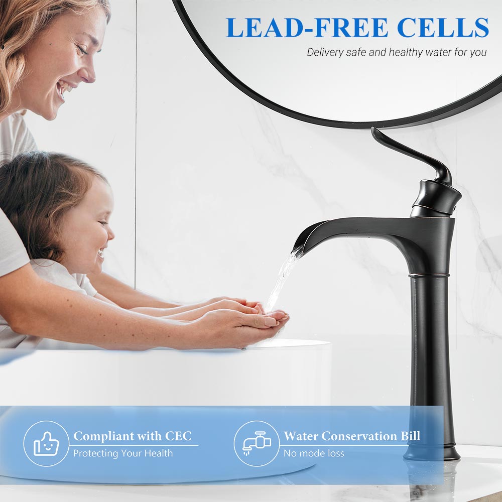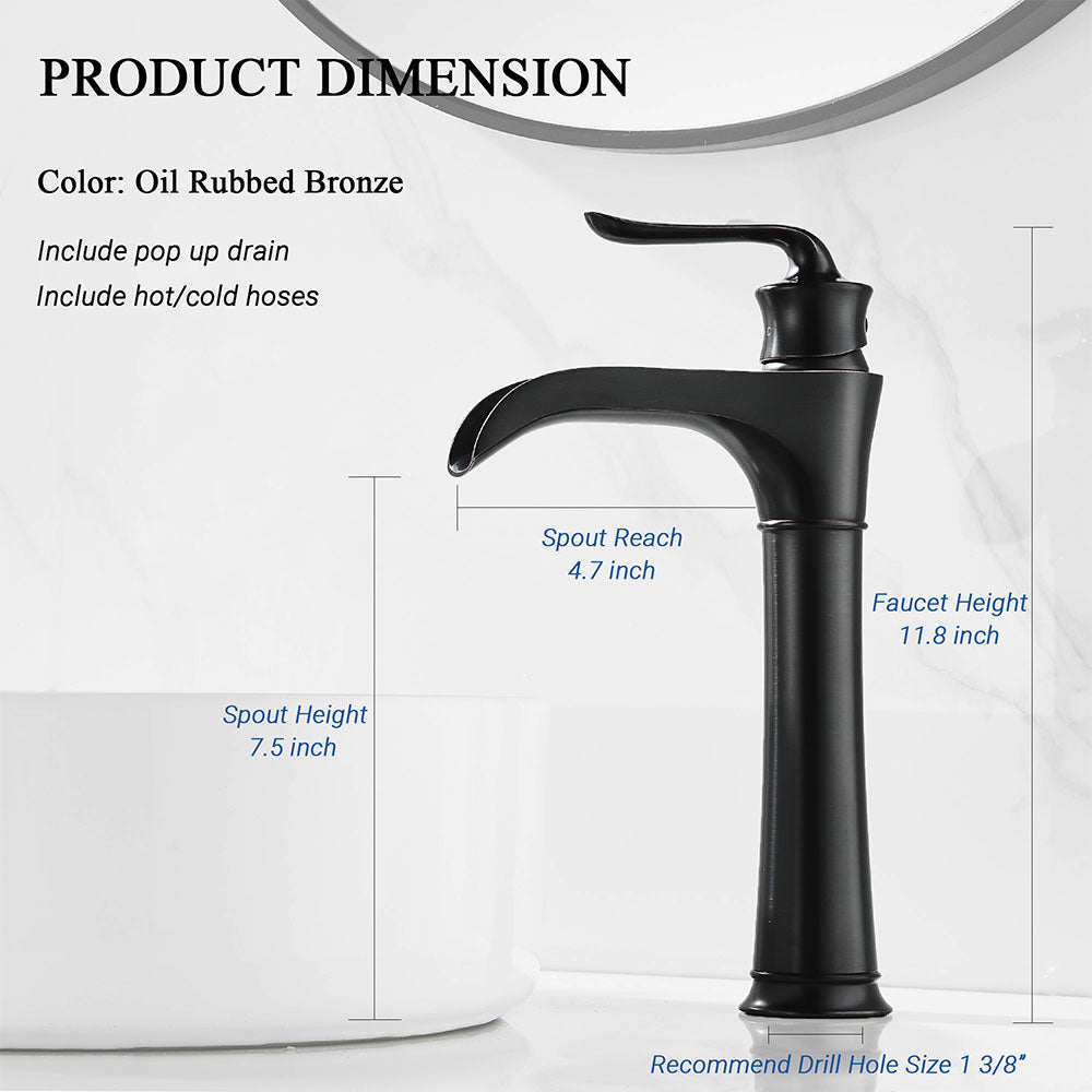 FBUKE Waterfall Vessel Sink Faucet for Bathroom Single Hole Bowl Mixer Tap, Oil Rubbed Bronze