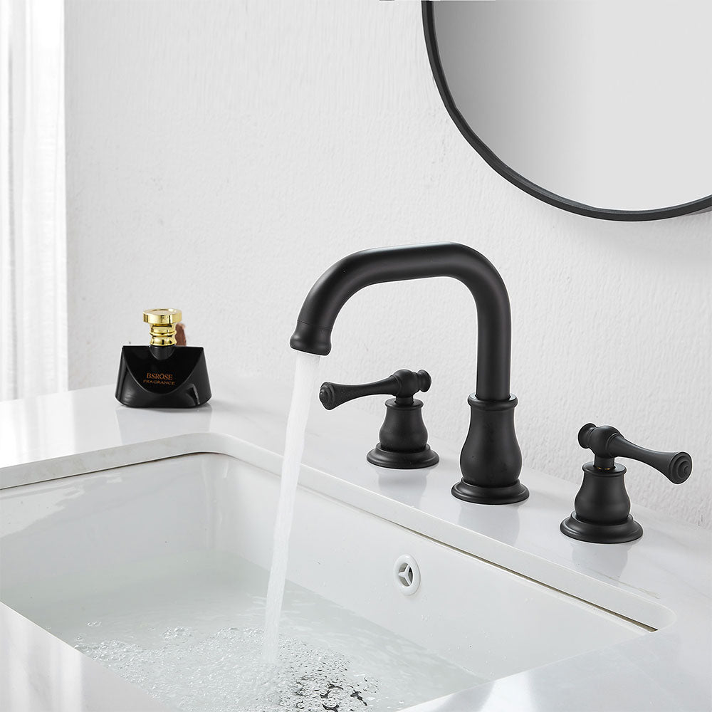 FBUKE Bathroom Faucet 3 Hole Widespread 2-Handle for 8-16 inch Vanity Sink, Matte Black