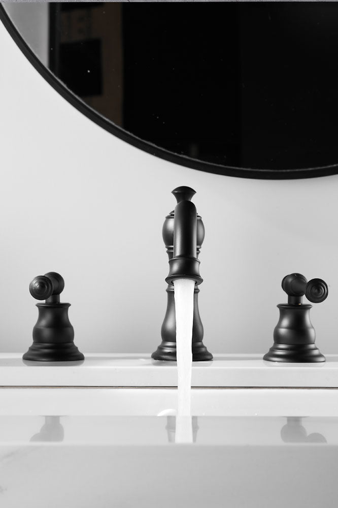 FBUKE Bathroom Sink Faucet Widespread for 8-16 inch 3 Hole Sink with Drain Stopper, 2 Handles, Matte Black