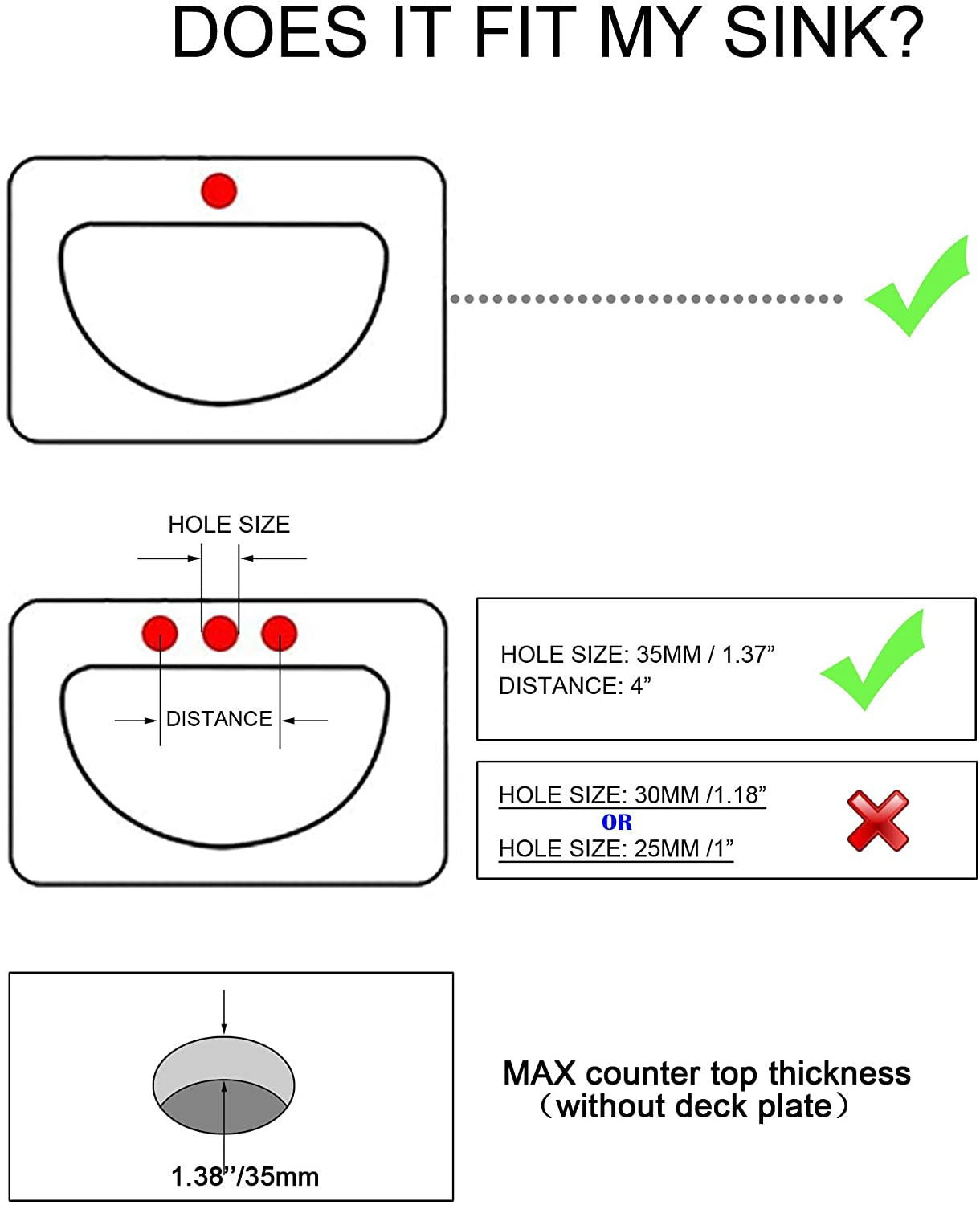 - Include escutcheon cover plate for 3 hole bathroom sink