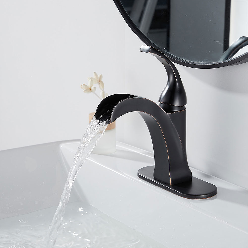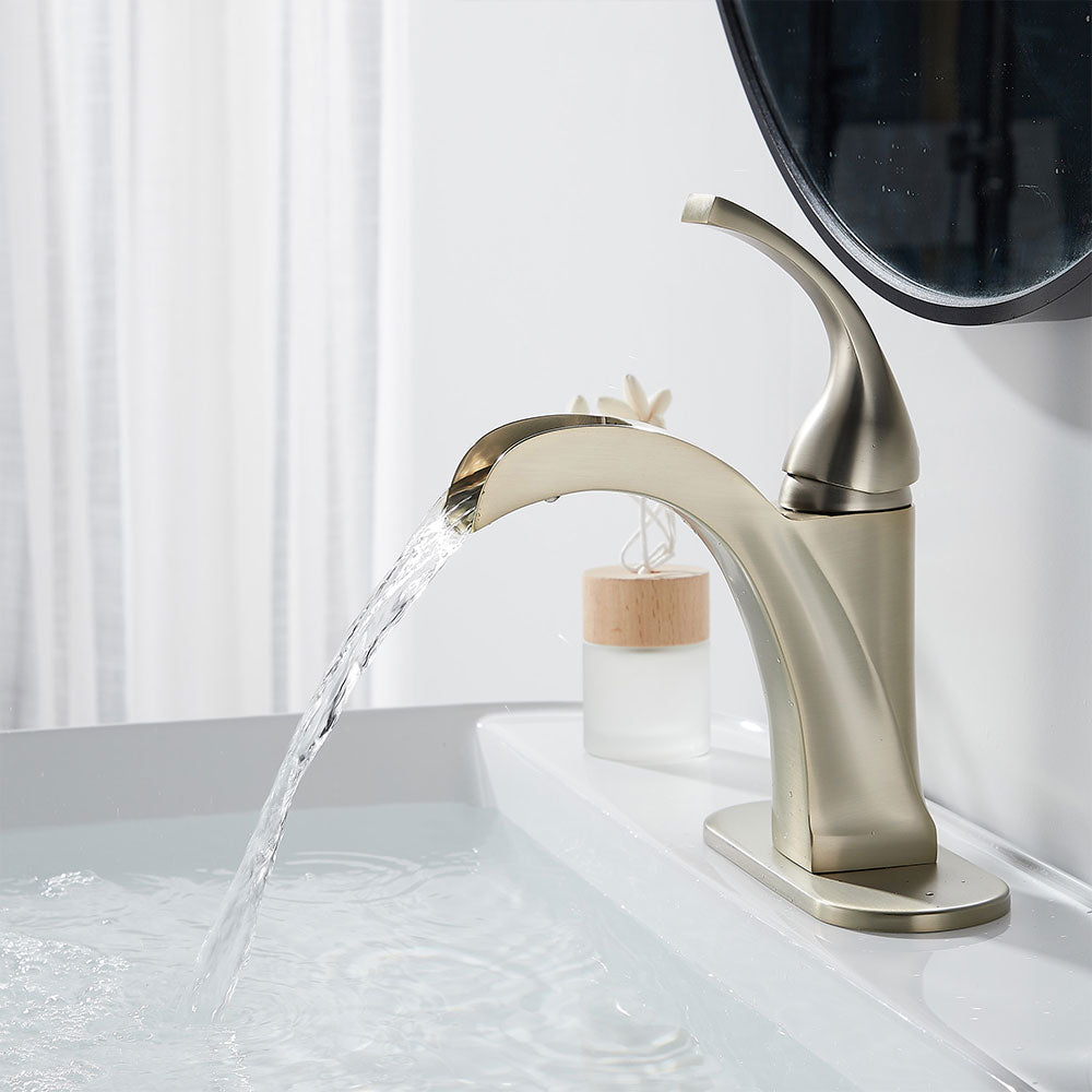 FBUKE Bathroom Waterfall Faucet and Stopper Single Handle Vanity Sink Basin Mixer Tap, SH0915H